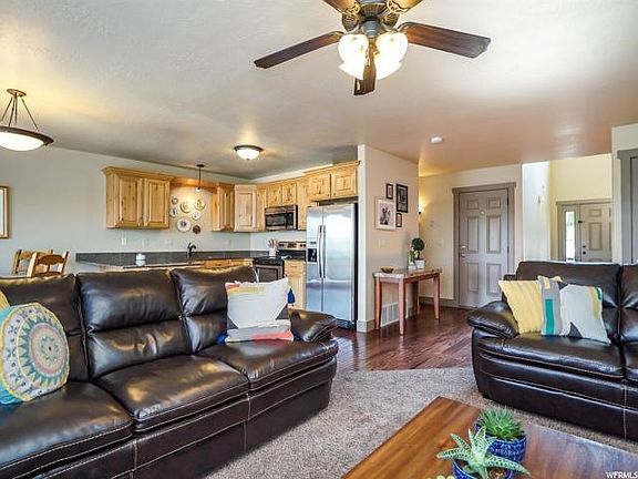 GORGEOUS, GORGEOUS, GORGEOUS!! You will fall in love with this impeccable Bountiful townhouse! Features include granite counters, hardwood floors, stainless steel appliances, master bedroom with 2 closets, double vanities in master bathroom, fully finished basement, beautiful paint colors, extra storage under stairs, and home warranty. The two spacious living areas with convenient access to deck and patio are perfect for relaxing and entertaining guests. The floor plan flows nicely and offers lots of natural light. Parking for you and your guests is super easy with an extra parking space right in front that is designated for only this unit. Super convenient location near shopping and restaurants. This desirable end unit townhouse is a must see!
