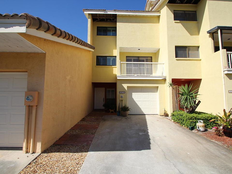Beachside townhome steps from the ocean, with private community beach access, community pool, clubhouse, and park area nearby. This townhome features 3 bedrooms, and 3.5 baths, 1 car garage, porch area overlooking nice green courtyard, 3 balconys, plantation shutters throughout, newer windows in kitchen and kids room, 18'' tile and laminate, NO carpet, downstairs bedroom has Murphy bed for lots of room, updated kitchen with corian counter tops, new stainless steel appliances, and breakfast bar. There is a very comfortable feeling being in this home.