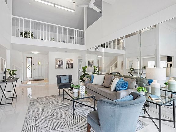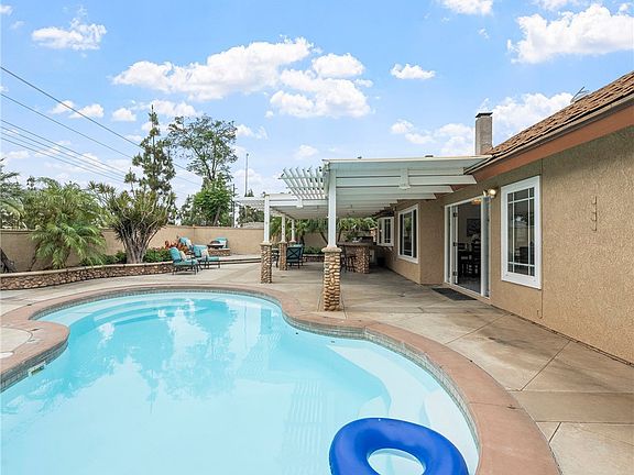 Stunning Upgraded Pool Home with Hillside Views in Yorba Linda! Welcome to 20720 Cottonwood Road, a gorgeous and upgraded pool home situated on a desirable corner lot in Yorba Linda, offering picturesque hillside and city light views. This spacious residence boasts 2,491 square feet of living space, featuring three bedrooms plus a dedicated office and a versatile loft area, and two beautifully appointed bathrooms. The dining room is illuminated by recessed lighting, a brick fireplace and offers the convenience of a walk-in pantry. The adjacent kitchen is a chef's delight, showcasing elegant quartz countertops, a stylish glass mosaic backsplash, a bright garden window, Newly painted cabinetry with new hardware. The living room features soaring vaulted ceilings and ceiling fans, with double doors that open to the inviting backyard oasis. The primary suite offers a relaxing retreat with a ceiling fan, window blinds, a freestanding closet system, and mirrored wardrobe closet doors. The en-suite primary bathroom features modern quartz countertops, dual sinks, and a beautifully tiled shower with glass doors. The second bathroom offers a comfortable tub and shower combo and an upgraded vanity with sophisticated marble accents. The additional bedrooms are both equipped with a ceiling fan and window blinds. Ascend to the versatile loft area, featuring stylish luxury laminate flooring, dramatic cathedral ceilings, and a dedicated office setup. Also in the loft is a family room that provides additional living space. The home also features a two-car attached garage with a new modern garage door, overhead storage and is EV plug ready. Step into your private backyard oasis, complete with a sparkling swimming pool, a covered patio perfect for outdoor entertaining, a built-in BBQ and island featuring river rock accents with bar seating, and a cozy fire pit for evening gatherings. Additional upgrades include elegant porcelain tile floors throughout the main living areas, a stunning Italian marble stairway, and an upgraded 200 amp electrical panel, ensuring modern convenience and style.