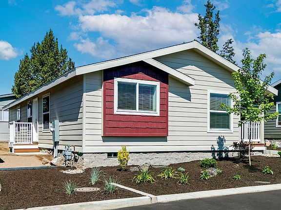 Welcome to Cascade Village, Bend's premier 55+ manufactured home community. With exceptional features and modern design, this home offers a comfortable and stylish living experience. This stunning new Marlette Deschutes River model manufactured home boasts energy-efficient features including Energy Star construction and central air conditioning, as well as stylish stainless-steel appliances and a farmhouse sink with apron. Enjoy plenty of natural light thanks to the 32′ x 48′ skylight in the kitchen. The exterior boasts an eye-catching Origami design with shake columns, craftsman front door, and box-bay windows. Inside, the vaulted ceilings create an open and airy feel, while the rustic hickory cabinets and pullout pantry shelves provide ample storage. The primary bath features a luxurious 60″ tile shower and linen cabinet with drawers. This 2-bedroom, 2-bathroom home also includes a single-car attached garage. Don't miss an opportunity to make this your dream home!