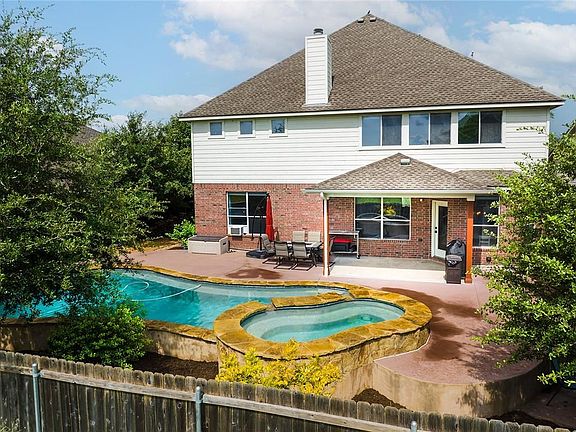 The beautiful entertainers home you've been waiting for awaits! From the custom inground pool and hot tub, open kitchen to living, and flex game room with a private media room upstairs, this home has it all. As you enter the home the dedicated office space is to your left and half bath to your right. As you walk towards the kitchen, the formal dining is to your left. The spacious kitchen is open to the living room and eat in kitchen which overlooks the amazing oasis out back. Backyard boasts a gorgeous custom pool and hot tub and large pool deck area. Primary bedroom is off of the living room on the main floor. Upstairs you will find the large flex/game room perfect for the pool table which comes with the home. As well as a private media room. 3 additional bedrooms and 2 full bathrooms are also upstairs. The ideal layout!