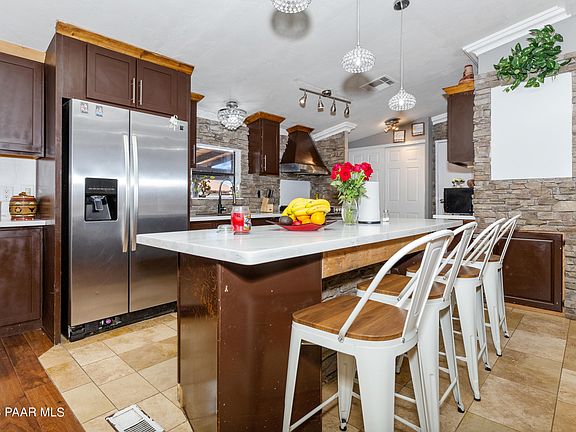 Come see this one. This beautiful home has been fully customize from the metal roof to the stone rock in the kitchen. Also Has a custom BBQ area and a detached game room/man cave/ she shed or / hobby room. This home is 3 bedroom 2 bath with an extra sitting room accessible thru the dining room. Fully fenced with mountain views, Has a custom 3 car carport. This home is also being sold with an additional lot Parcel Number 500-04-311. Easy access to the I17 to easily go to Sedona or Phoenix for weekend get-a-ways. Also only 37 miles to Downtown Prescott. and 35 miles to Costco.