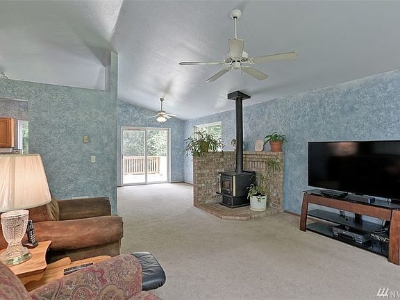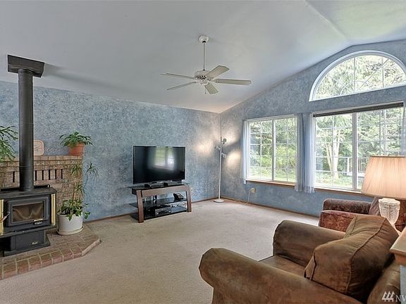 Escape the burbs! This country split level includes a lifetime roof warranty, delicious well water, 1+ acres of wooded seclusion and yet just minutes from Arlington and I-5. The kitchen has all stainless appliances and an eating area opening to dining room and living areas. large private lawns front and back. large, open bright living room boasts vaulted ceilings and wood stove, spacious family room downstairs opens to it's own patio, oversized 2 car garage, RV parking and room for many toys