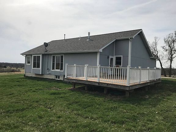 Beautifully modern 3-bedroom, 3 bath ranch home built in 2008 with natural gas! The home features Amish built custom cabinets made of knotty Alderwood in the kitchen, living room with fireplace, dining room, main floor laundry, large maintenance free deck, full unfinished basement and 2 car attached garage. There is 72 X 36 machine shed with 14' sidewalls, 12' overhead door, and a concrete floor. Additionally, the property has a small grain bin used for storage, and an unattached garage with electricity and dog kennel. It also has apple, peach and pear fruit trees for you to enjoy and a view for miles. The acreage consists of 115 acres pasture, 96.6 acres CRP paying $128.44 per acres till 2022 and 25 acres timber. The land has 8 ponds 6 of which are new and fenced and are stocked with catfish, bluegill and bass and many have frost proof tanks. There's plenty of wildlife for hunting and watching! This farm is located near Coffey in Daviess County.