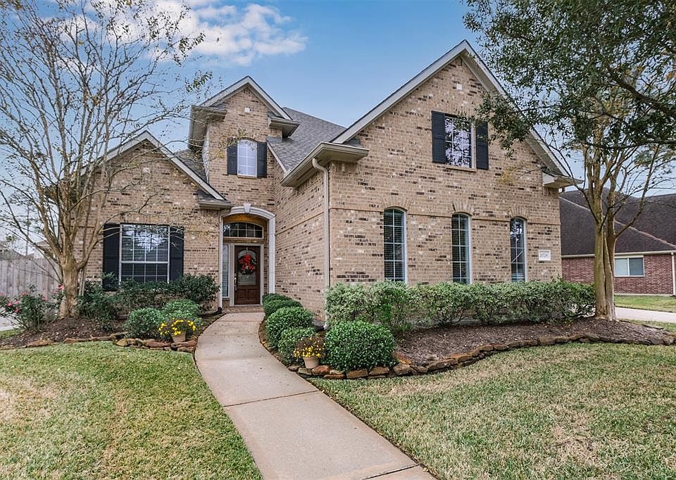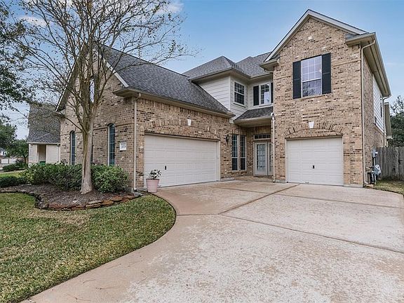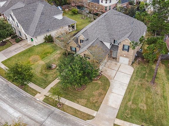 Gorgeous 2 story brick home across from Eagle Lake. This lovely 5 bedrooms, 4.5 baths & 3 car garage home provides ample living space. Grand entry w/study, dining room, dual stair cases, living room with walls of windows for natural light & a cast stone gas fireplace. The spacious kitchen offers a gas cook top, large island, walk-in pantry, breakfast bar & breakfast room. The secondary bedroom down w/an ensuite adds endless flexibility. Relax in the large primary retreat. Primary bathroom w/his and her vanities, corner spa tub, mirror framed mirrors, & large closet. The home offers generous room sizes, an abundance of storage, crown molding, & rounded archways. On the second floor, you'll find a large open game room w/a built in desk & 3 secondary bedrooms w/2 additional full baths, large decked storage attic, & Texas basement offer great storage. Roof 2020, AC 2014, convenient to shopping, dining and easy access to major highways, award winning Klein schools.