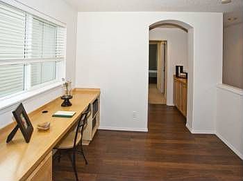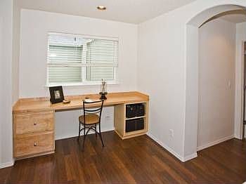 Impeccable 3 bed/2.1 bath home w/high ceilings, gleaming walnut Pergo style floors, spacious kitchen w/gas cooking, pantry, & island, master w/lg walk-in closet & bathrm, landing w/built-in desk & storage, 2nd & 3rd rooms w/Jack n' Jill bath, FR w/fireplace & slider to fenced patio w/quarters for dog. Warranty & all appliances incl. Not a short sale. Feels like a model home!