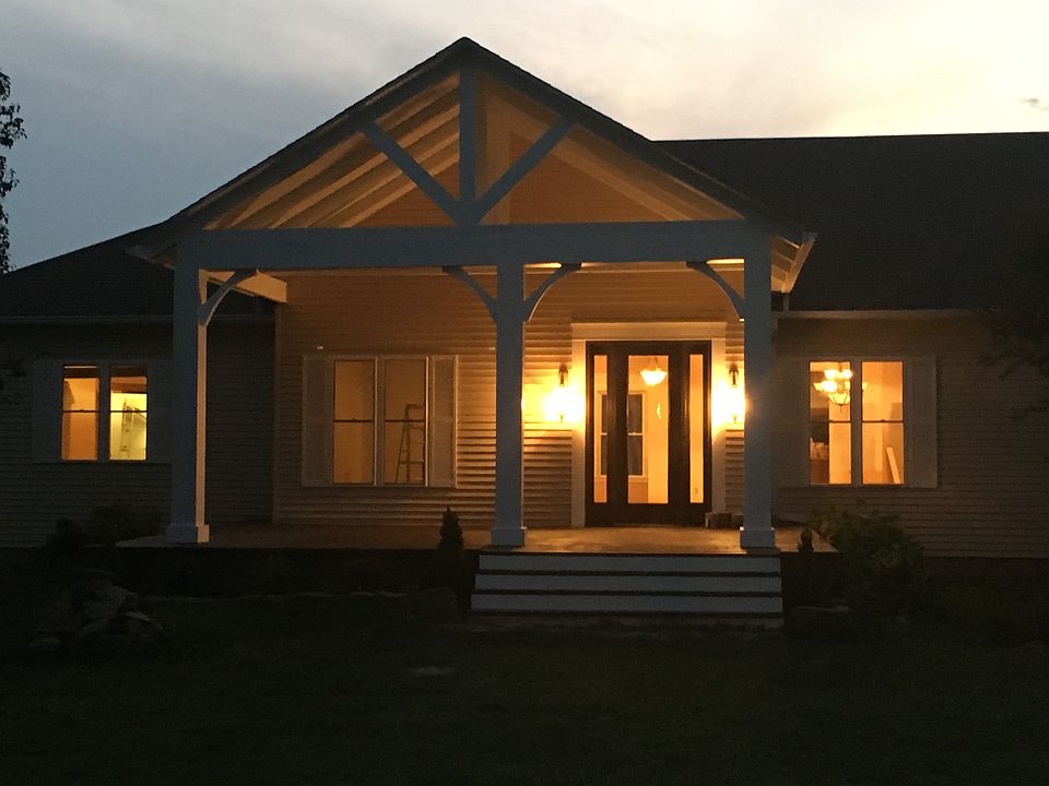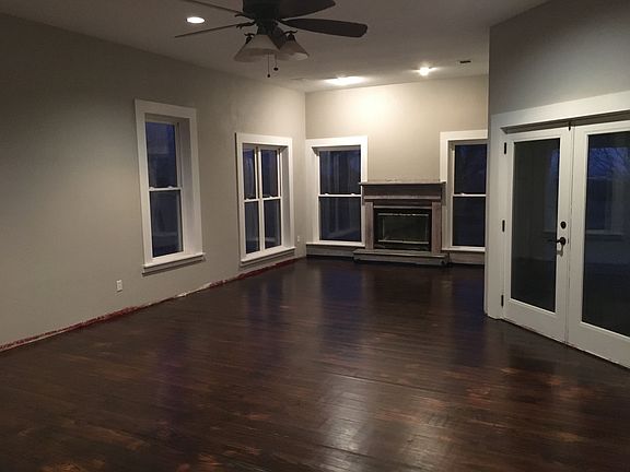 10 foot ceilings throughout, 2 fireplaces, hardwood floors throughout, Jacuzzi tub in master bath, walk in tile shower, custom cabinets, 6' x 9' kitchen island, master bedroom has a fireplace and sitting area, all closets are walk in, his and her walk in closets in master, laundry room, enclosed 3 car garage, 80' x 10' covered back porch deck with 4 sets of French doors, huge covered front porch with an 8' front door with side lights, has geothermal unit, and is 2x6 construction with architectural shingles. Baseboards are installed now. Most pictures are before baseboards. Property includes 2 acres with option to purchase more. Property lines are not set, very flexible with how buyer would like the 2 acres to consist of and if desire to purchase more acreage.