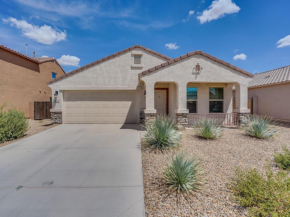 This 3 bedroom, 2 bathroom home with an office and a 2 car garage located in Maricopa city is move in ready! Inviting landscaping leads to the front entry. Property has a welcoming entry that leads to the open living space with a door that opens to the backyard. Kitchen has nice countertops and stainless-steel appliances. All the bedrooms are spacious, the master bedroom has a walk-in closet, as well as a bathroom attached. Outside there is a nice porch and low-maintenance backyard. Don't miss this one!