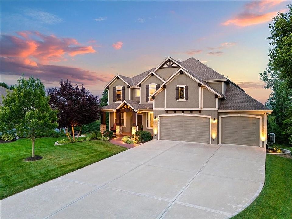 Sooooo much beauty and comfort inside and outside this one-of-a-kind home boasting extraordinary views from fabulously large windows plus two covered decks, and a covered patio extended beyond for fire pit seating. The sellers have taken exceptional care of this immaculate home! This floor plan is Roeser Homes' flagship 2-story, the Bailey plan, packed full with gorgeous finishes and special features, and can't be recreated at this price on a homesite like this. Not just a walkout, this homesite offers a spacious, level backyard landscaped perfectly to highlight the unparalleled long-range views of Shawnee Mission Park's west side - you'll see trees for miles! Want space to spread out? The suspended slab expanded basement underneath the 4-car garage can be yours! Its finished space is ideal for a true media, music or game/play room (extra insulation between floors!) plus walk-in cedar closet and storeroom door to backyard. This walkout lower level also has a rec room, 5th bedroom, 4th full bath with stunning shower and vanity, multiple storage spaces and a full-size wet bar. Smart home features include ethernet bridge and App controlled: front door lock; garage doors; thermostats for zoned HVAC; irrigation system with weather monitoring; front porch and exterior garage lights; deck and patio lighting; Alexa enabled lights in some rooms; whole house security system and cameras. More upgrades you'll love: newly refinished hardwoods; main level deck's w/lighted steps to the backyard; 2nd covered deck off primary suite w/retractable privacy shades; electronic air cleaners on all three heating and cooling units; a whole house water softener; custom blinds on most windows; custom landscape lighting in front and back; edge-to-edge epoxy floor in garage; 10' W door on 3rd bay, and more. Love this location w/easy access to DeSoto schools, including Mill Valley HS, and I-435, K-7, KCI Airport, multiple restaurants, services and shopping centers. Do not miss this opportunity!