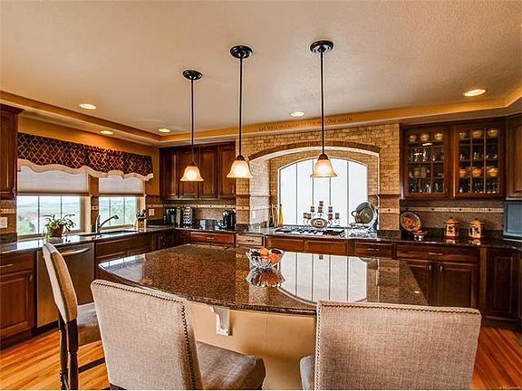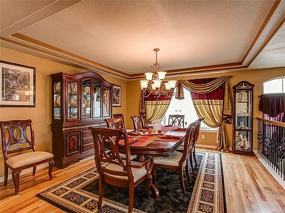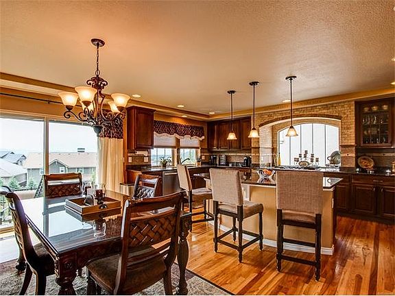 Beautiful home in the Meadows. Open floor plan with high ceilings through-out home. Kitchen has beautiful cherry cabinets, custom back-splash, stainless steel appliances and granite counter tops, huge kitchen island. Walls through-out home have a beautiful hand troweled texture, Flooring features hickory hardwood. Upstairs has 4 bedrooms and a bonus room. Master bedroom has his and her walk-in closets. Main floor study, living and dining room. Basement has full sized windows and a media room that is pre-wired for your home entertainment system, guest bedroom and full bath. Yard features Trex deck with electric powered retractable awning, and backs to green belt with amazing views of the Mountains. Fabulous finished walk out basement with stamped concrete patio and Hot tub. Home has 2 A/C units and 2 furnaces. Cul-de-sac location with walking trails in the Meadows subdivision, Elementary school is within walking distance.