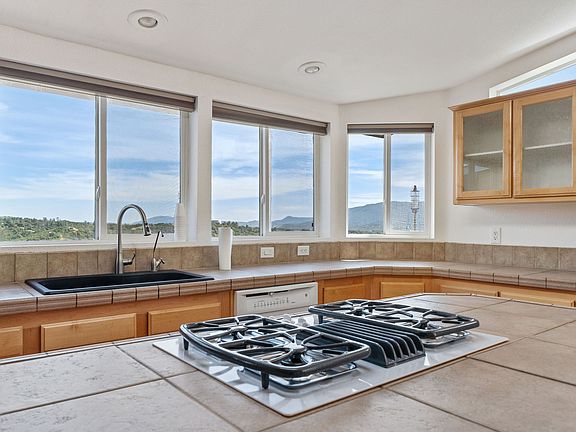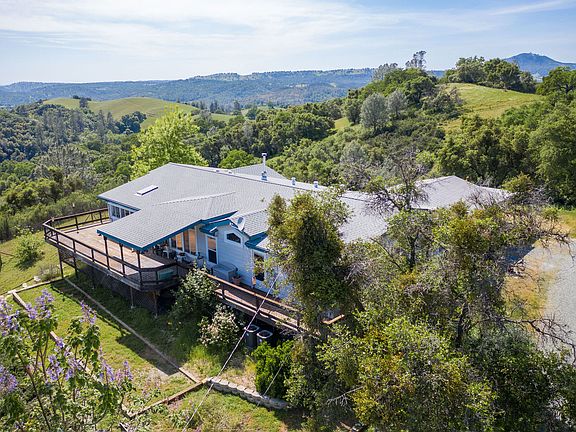 Views for miles from this hidden oasis! Snuggled on the hill top with Views from every room, awaits this dream home! Love to be outside? This home boosts an amazing 1000 sq. ft. of decking on two sides of the home taking in the panoramic views. Fruit trees, horse shoe pit, bocce ball court, fenced area for pets and lots of room to roam on your private 6.33 acres. You will never want to leave this inviting home. Surround yourself with natural Light in this beauty! Spacious 2534 sqft home features, a welcoming living room and dinning room with cathedral ceilings and lots of windows with motorized window blinds. In the large gourmet kitchen you will love all the cabinets, walk in pantry, the breakfast bar and the large island, and of course the amazing views from every window! Next you will find the warm and cozy family room, complete with a brick fireplace, views and a sliding glass door onto your perfect outdoor entertaining area. There is a large Master bedroom with luxurious master bath featuring a jetted tub with a view of course! There are two more bedrooms plus a den with a sliding glass door walking out to your deck area, would be perfect as another bedroom or home office space. Fencing around yard, attached garage, plus 1 car carport. Sunsetter automatic awning,Owned solar panels, reverse osmosis water filtration in kitchen. Enjoy amazing sunsets and privacy of this 6.33 acre property but it is under 10 minutes to town!
