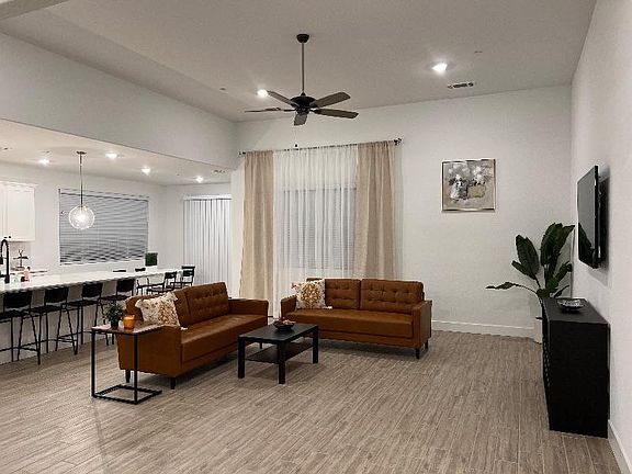 Furnished Brand NEW never lived in beautiful 3 bedroom 2-bathroom home located in a very quiet neighborhood in Clovis Unified School District. New furniture and appliances. It has OWNED SOLAR ( lower PG&E bill for you) and concrete all around backyard. The house futures beautiful white cabinets with quartz countertops throughout, wood plank tile flooring, stainless steel appliances ( new refrigerator, washer & dryer will be provided with no warranty), large driveway with 3-car garage. Sorry No pets. Landlord pays for monthly HOA fee and quarterly pest control. Tenant will be responsible for all utilities and will be required to obtain renters insurance prior to taking possession of the property. 6 months.