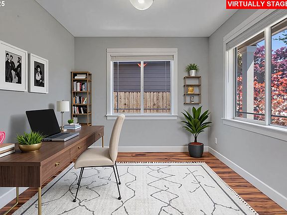 Beautifully maintained 3 bed, 2.5 bath home in Gresham with RV/boat parking & a 2-car garage. Built in 2004 with all-new exterior paint, a brand new roof, & recently serviced HVAC. Covered entry opens to an office with double doors. Main level features laminate flooring, a living room with gas fireplace, dining area, & kitchen with granite slab counters, stainless appliances, tile backsplash, pantry, & upgraded blinds. Sliding door leads to a covered deck & fully fenced yard with shed. Laundry room, half bath, washer/dryer included. Upstairs offers 3 bedrooms, a full bath with tile, plus a primary suite with vaulted ceilings, walk-in closet, double vanity, soaking tub, & separate shower. Garage has built-in cabinets & newer opener. Nest thermostat adds modern comfort. Move-in ready!