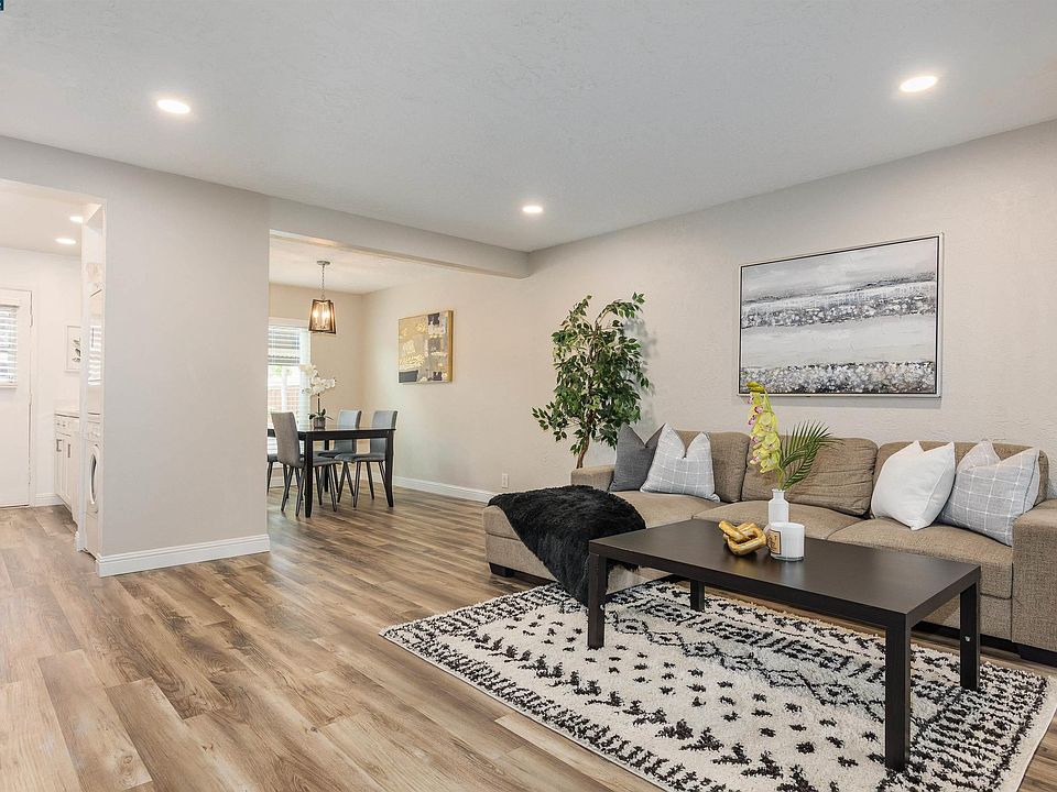 GREAT LOCATION – Right across the street from Hillcrest Community Park, walking trail and seconds from 242 and hwy 4. This is a Spectacular completely remodeled Townhome in the Terraza Del Sol complex. Every detail thought of; Gorgeous kitchen with spacious white solid countertops, new cabinets and matching appliances, updated lighting, textured ceiling throughout, engineered wood flooring downstairs in the living room, kitchen and large dining room. Also a 1/2 bath downstairs. Leading to the upper level is new carpet and the upper level has 2 bedrooms with laminate wood floors. The main bedroom has view of the green space which is so tranquil in this complex. The upstairs full bathroom is sparkling new. The covered parking is directly out the back door. Lots of storage, nice patio, community pool and peaceful area to live. This is a MUST see home!