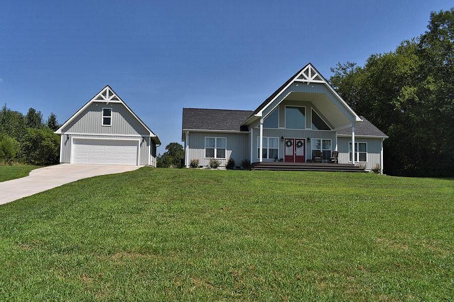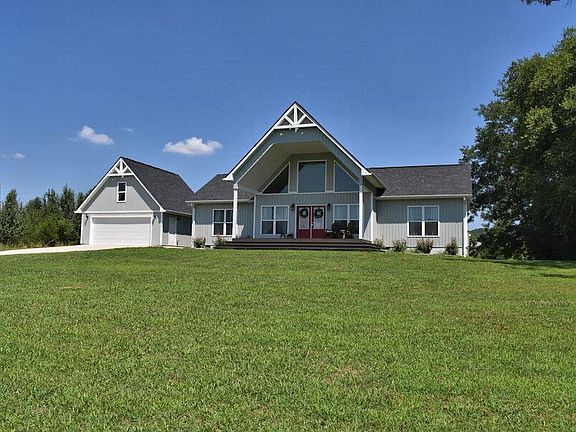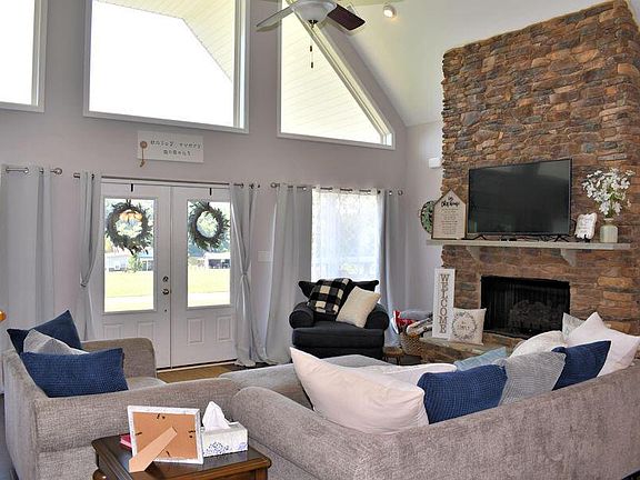 Situated on over an acre, level lot & with river views from the vaulted, covered front porch and rolling countryside views from the screened-in back porch, this gorgeous 3 Bedroom, 2 Bath one-level home has loads of the WOW factor on the outside. Even more WOW on the inside with natural light pouring in from every angle with oversized windows and a vaulted glass-and-beam wall. Once you enter the home, you'll say, ''This is the one!'' Gorgeous hardwood floors greet you at the door as you enter into the Great Room with its soaring, vaulted ceiling, all that natural light pouring in and a huge stone fireplace anchors the room. An open floor plan is great for entertaining. The kitchen features staggered, arctic white cabinetry, granite counter tops and gleaming stainless steel appliances.