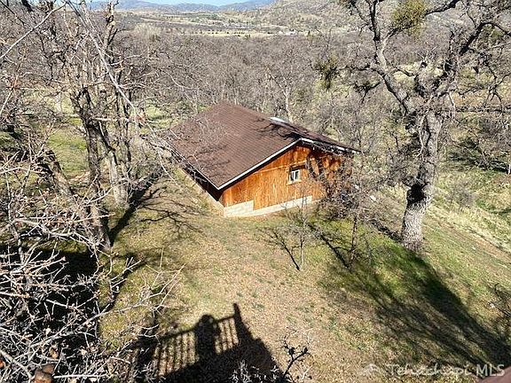 This home is somewhat simple but for the right buyer it will be a steal. Located on 5 acres it has 4 bedrooms and 2.50 baths. Downstairs has a super large laundry/game/area etc, some above floor storage with cabinets. It also could very well be changed into a mother in laws or guest qtrs, or home office etc. So much potentiual. There is a walk out patio deck with gorgeous views of the valley. detached garage can fit almost 4 cars, then their is a carport with another workshop area. The home also has a generator conector spot that runs well, and some electrical should power go out. Front porch runs the length of home, with circular driveway. Lot is covered with oak trees and crests the hill on north side. Home finished modestly inside, but with alittle imagination and determination you could make this everything you always wanted. Private well.