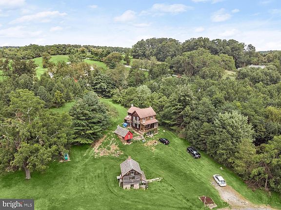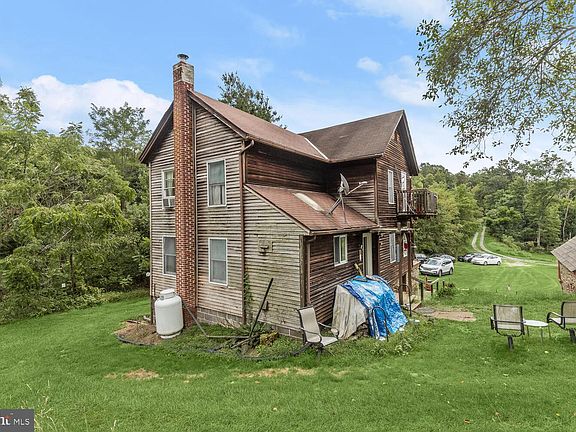 Embrace the serenity of rural life in this picturesque 1840's Homestead featuring the original farmhouse situated on 26 acres of breathtaking landscapes, with a wealth of charming features including a root cellar, spring house, 50 x 34 bank barn, and a soothing spring-fed pond. With a history dating back to the mid-1800s, this property carries a rich legacy, now awaiting your unique vision to make it your own. Step into the interior of the home, where a cozy kitchen with an inviting skylight creates a joyful atmosphere for culinary endeavors. Share delightful meals in the adjacent dining room, and then transition seamlessly to the living room, which opens to an enclosed upper-level porch-a perfect spot to witness the vibrant tapestry of seasonal colors that unfolds around you overlooking a pond view. Journey upstairs to find a generously sized primary bedroom, offering a personal balcony for taking in breathtaking sunsets. An expansive secondary bedroom and a spacious full bathroom complete the peaceful sleeping quarters, providing comfort and tranquility. The lower level exudes a captivating charm with its rustic wood-beamed ceiling and the comforting warmth of a pellet stove. extending a heartfelt welcome to all who enter. An enclosed front-facing porch adds to the allure, while a conveniently located laundry room enhances its practicality. This property holds immense potential, offering a chance to craft your own idyllic haven within its historic embrace. Experience the magic of countryside living as you make this as-is farmhouse your own or build a new home on the upper landscape and enjoy the original home as your studio, office, or hunting lodge, surrounded by the beauty and tranquility that only such a remarkable setting can provide. This property includes a recorded minor subdivision, and it is NOT in preservation.