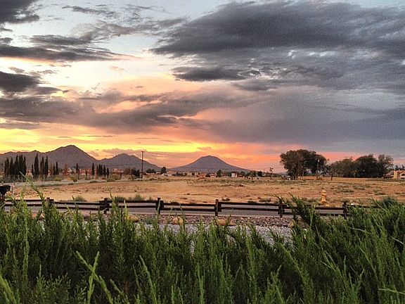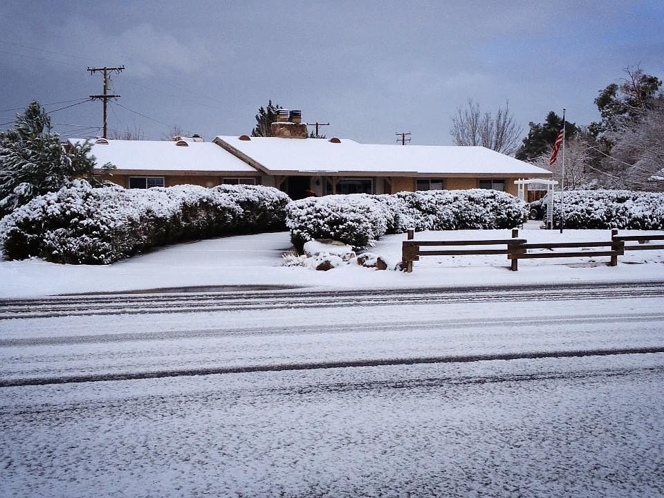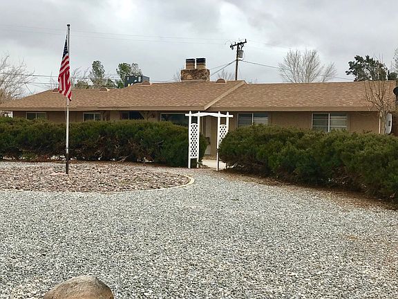 3 bdrm, office/bonus room, 2 and 1/2 bathrooms. Home built by Roy Rogers, Jr. (Dusty) in 1977. Lot is almost 3/4 acre. Rock and water-friendly landscaping, mature trees in front, circular driveway, 2 car garage. Fully fenced (wood) backyard and side yard with rock landscape and fire-pit area's, pond, BBQ pad, room for a pool, several existing raised garden beds. Large framed building with electricty in back yard, acts as a shed/storage area but would make a great shop. Pull-through gate from driveway into backyard. Large dining room with custom built in cabinets. Kitchen has granite countertops, plenty of cupboards, and a desk. Double-sided fireplace (dining room/living room) with wood stove on living room side. Indoor laundry room with cupboards, toilet/sink bathroom connected. Room off the laundry area (4th "bedroom"/office)was recently remodeled (paint/carpet) and a closet was added along with a Master Cool Evaporative Cooler. This room has entry from garage as well as the back yard and is best suited as an office or craft room. It is at the opposite end of the house from the bedrooms. Master bedroom is roomy and has a sink/shower/toilet attached bathroom. Two other bedrooms share the hallway bathroom. Gas line to patio for BBQ hook up. Whole-house fan. Solar panels, lease pmt transferable, $114 per month. 3-ton Amana roof-top AC/Furnace unit replaced July 2018 along with Emerson "Smart" Thermostat. Roof was replaced in Nov. 2003. Septic pumped in late-2017. Chimney serviced in November 2017.