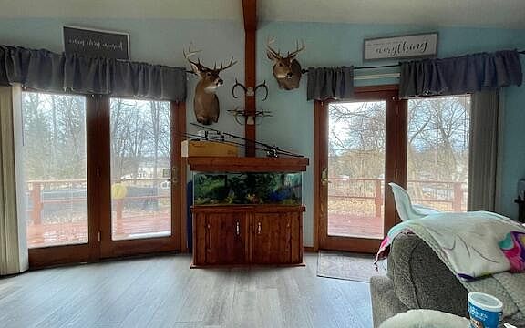 Move in ready adorable 2 bedrooms and 1 bath home located on 4 city lots in Onaway. Enjoy the ambiance of the natural gas fireplace. On those hot summer days cool off with the portable air conditioner that has been installed for a more permanent fixture. Nice one car garage with plenty of storage. Nice added features is the air exchange system and skylight. All fencing for the yard, walk in tub(sitting in garage) will be included. There is extra flooring, shingles and paint. Fiber Optice Internet is available with PIE&G. Walking distance to the local stores and restaurants. Only 5 miles from Black Lake. Buyer and/ buyers agent to verify all measurements and information.