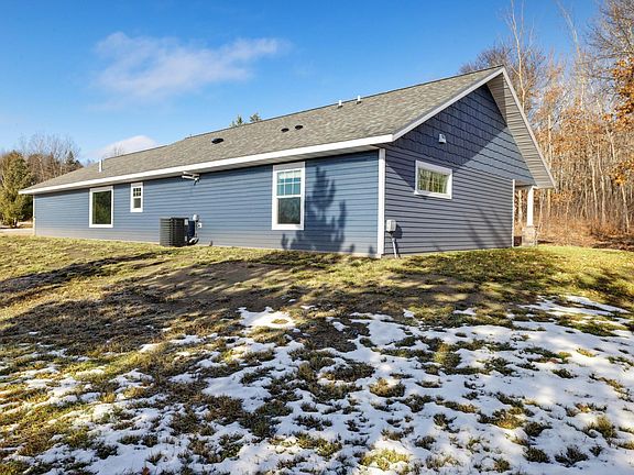 Built in 2022 this 1,400 square foot gem offers 3 bedrooms, 2 baths, vaulted ceilings, forced air, central air, and air exchange in an open floor plan. Complete with attached heated and finished double garage, maintenance free exterior and covered porch. Set on a 3.23 acre tract close to Fishhook Lake and a short drive to town.