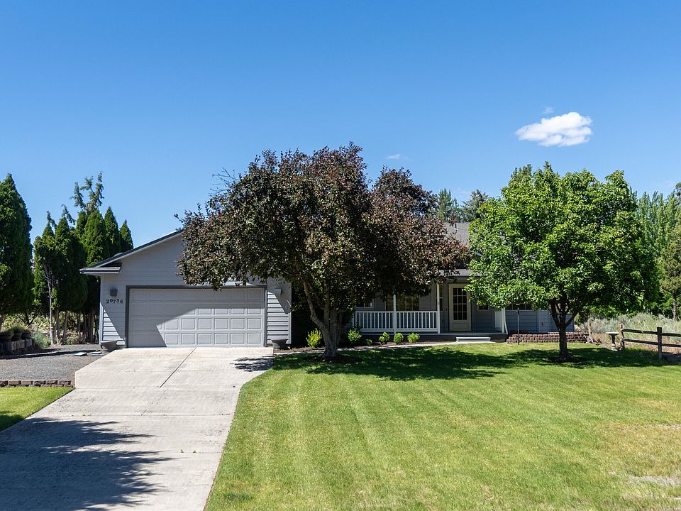Just a short drive from Bend or Redmond to the tranquil community of Starwood. Featuring 3 bedrooms + flex room in front that could be used as an office, workout room ect. 2 full bathrooms and a large primary walk-in closet. The kitchen includes an eating space and large pantry. Dedicated laundry room. Large central living space, with high ceilings and large windows perfect for viewing sunsets over the pond and mature trees. On your back deck you'Il enjoy seasonal wildlife come and go. Extraordinary location- lot adjacent to home will remain undeveloped. You have a neighbor on only one side and privacy as you are set back from the street and are surrounded by HOA maintained lawn in the back. Exceptional Community Amenities. Off-leash dog park, Community Loop Trail, 1.4 mile long, Gated RV/boat storage parking, private green dump, large wildlife pond. Galaxy Park offers a playground, picnic area, basketball court, horseshoe pit, soccer field and grass. 160+ acres of private land.