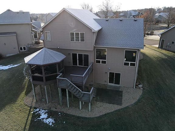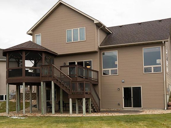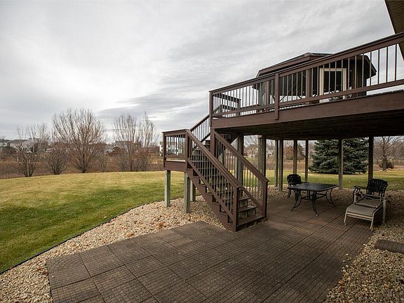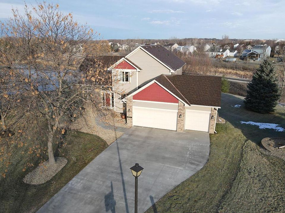 There are 3 things you should look for when purchasing a new home... "Location, Location, Location". This home has all 3 of those things PLUS the home is gorgeous! Located in Lakeville with Lakeville South High School only minutes away, you'll enjoy being at the end of the Cul-de-sac and backing up to City property and a Pond. Original owners worked with the builder to add more glass to enjoy the views looking out over your backyard and nature! From the time you walk into the home you'll have the view from the living room, dining room and kitchen. Main floor office/den for those who work from home and a large laundry/mud room off the garage. There are 3 bedrooms and 2 full baths upstairs, along with a 4th bedroom and bath downstairs. The family room/rec room downstairs has a gas fireplace to enjoy movie nights plus there is surround sound. The large deck also has a screened porch built on top of it to enjoy those summer evenings outside. Newer concrete driveway to the 3 car garage.
