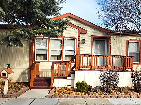 With a freshly painted interior, this home in upscale 55+ Cascade Village Park is light and bright. Enjoy morning coffee on your back deck overlooking your landscaped, fenced back yard. Efficient floor plan, vaulted ceilings, and good separation of primary and secondary bedrooms. Eat-in kitchen with breakfast bar. Primary bedroom has walk-in closet and large, renovated bathroom with beautiful, walk-in tiled shower, double vanity, extra storage, and toilet with bidet. Separate laundry room with overhead cabinetry. Extra-deep single, detached garage with work bench. Appliances included. Gutter guards. Space rent is $767.73/month and includes sewer, fabulous clubhouse with planned activities, seasonal pool, exercise room, dog park area, street snow removal, and park security patrols multiple times per day. Stove top works, but oven does not work. This wonderful home is priced for an AS-IS sale. Call for your appointment to see this great, affordable home!