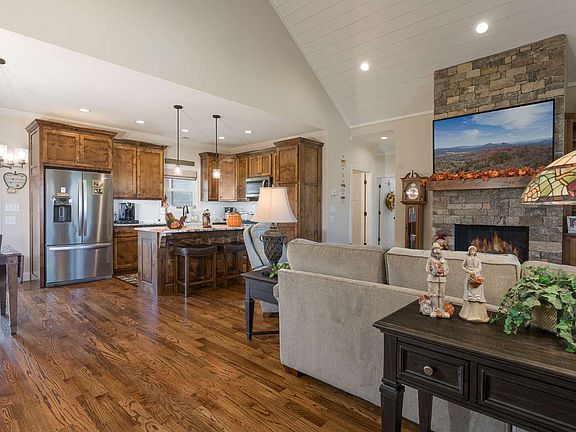 This stunning craftsman style property sits on .75 and features an open floor plan, perfect for entertaining. As you step inside, you'll be greeted by a cozy fireplace, creating a warm and inviting atmosphere. The spacious kitchen with a center island is ideal for cooking up delectable meals. Main floor master suite offers a private sanctuary with its own luxurious bath, providing ultimate relaxation after a long day. There is also a guest bedroom that offers ample space and a serene atmosphere, ensuring your guests feel right at home. Step into the finished terrace level, where you'll be greeted by an incredible entertainment room perfect for hosting movie nights or cheering on your favorite sports team. This space boasts a cozy bedroom for guests, a convenient den/office for work or study, and a full bathroom. But the real showstopper? The access to the patio area with a firepit, offering the ultimate setting for unforgettable gatherings with family and friends. Picture the glow of the fire, the sound of crackling wood, and the warmth of good company as you create lifelong memories in this exceptional outdoor oasis. Don't miss out on this rare opportunity to own a home that embodies comfort, luxury, and entertainment all in one! Whether you're craving a tranquil evening under starlit skies or seeking a vibrant space to entertain loved ones, this property has it all. Make this dreamy retreat your own before someone else does!