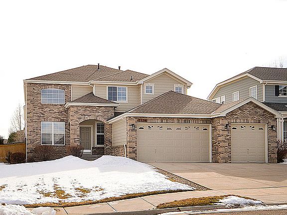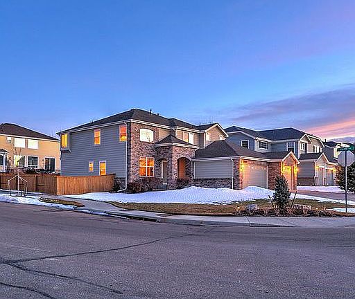 Outstanding, corner lot West facing, sun filled open floor plan w/Mt views featuring private main floor office/study w/2 sided gas fireplace shared w/ family room. Gourmet kitchen has large eat in island, granite counters, SS appliances, decorative tile backsplash, 48" cabinets & huge walk in pantry. Formal living & dining rooms & massive loft upstairs overlooking soaring cathedral ceiling in family room. Private 5-piece Master Bath just off Master Bedroom w/ mt views has large walk in closet. Oversize 3-car garage, AC, & full unfinished basement. Walking distance to Black Rock Elementary, community pools, trails, parks, & Colorado National Golf Course.