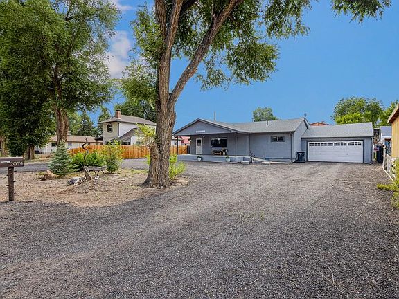 Located in the highly desirable St. Charles Mesa area of Pueblo County, this beautiful 3-bedroom, 2-bath ranch-style home with central air sits on just over a half acre and offers the perfect blend of comfort, functionality, and country charm. The property features an attached 2-car garage and a stunning xeriscaped front yard with a circle driveway for easy access and ample parking. A welcoming front porch sets the tone for the home's warm, inviting atmosphere. Inside, you'll find wood floors flowing through the living room, dining room, and all three bedrooms. The spacious master suite has been recently remodeled, boasting a luxurious 5-piece bathroom with a soaking tub, separate glass-enclosed shower, dual sinks, and a massive walk-in closet. One of the home's most unique features is the bright and airy sunroom at the back—perfect for unwinding and taking in the peaceful county lifestyle. Step into the expansive, fully fenced backyard—complete with a garden, chicken coop, horseshoe pit, and an above-ground swimming pool—ideal for outdoor entertaining and self-sufficient living. This property is a rare find, offering space, privacy, and all the amenities for comfortable living in a sought-after location.