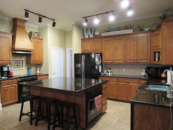 Imagine living and entertaining in your own backyard oasis! Large saltwater pool with attached spa, covered outdoor kitchen, covered living area with large fireplace overlooking your own stocked half acre pond with footbridge. Bathroom with shower located next to outdoor kitchen. Ample open patio for sunning and lounging. Inside this beautifully maintained home, you will find a large kitchen with custom cabinets, granite and double ovens opening to a large breakfast area and family room. Master retreat has it's own fireplace and opens to sunroom with view of backyard. Bonus room located upstairs could be the perfect man cave! Storm shelter in attached garage. Fully sprinklered yard.