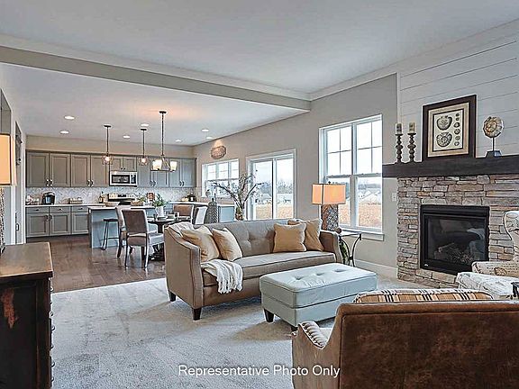 UNDER CONSTRUCTION: This charming, 1-story home in our Cortland Park 55+ community features a 2-car garage, 3 bedrooms and 2 full bathrooms.. Stylish vinyl plank flooring is found throughout the main living areas. Sliding glass doors in the dining area provide plenty of natural light and access to the screened in porch. The adjacent kitchen is well-equipped with stainless steel appliances, attractive cabinetry, and granite countertops with tile backsplash. The great room is warmed by a gas fireplace with stone surround. The spacious owner's suite includes a private bathroom with a tile shower and an expansive closet.