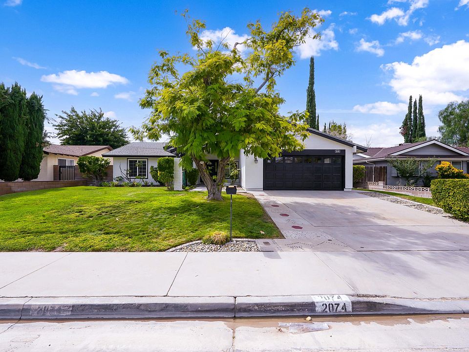 FULLY REMODELED! This gorgeous single story home offers great curb appeal with a fresh and modern color scheme. Once inside you'll be greeted by a HUGE formal living/dining room combo with a tall vaulted ceiling and brick fireplace. The kitchen has BRAND NEW white shaker cabinets with soft close hinges, quartz countertops, stainless steel appliances and recessed LED lighting. New laminate flooring, upgraded baseboards, faucets and fixtures throughout! Lovely enclosed patio to enjoy you morning cups of coffee with plenty of windows for natural light. HVAC system is only a few years old and windows have all been upgraded to dual pane. The backyard offers a ton of privacy with tall block walls, wraparound pergola, a variety of fruit trees and lush landscaping. Located in a quiet West Lancaster neighborhood!