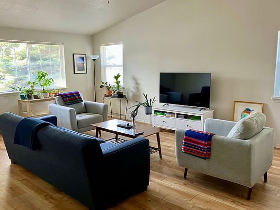 Beautiful single-level home with modern updates and an expansive, brand-new outdoor deck for rent! This 3 bedroom, 2 bath house features vaulted ceilings, a brightly lit great room, breakfast bar seating, and a sunny backyard. Dishwasher, hot water heater, and refrigerator are all new. Well sized primary bedroom and bath with shower and dual sinks; two additional bedrooms share a full bathroom. Bedrooms have newer carpeting, while common areas of the house have newer, well-maintained LVP flooring. Central A/C will keep you cool in the summers. This home has a large, fully fenced backyard, RV gate, and a spacious garage for parking or storage. Enjoy stunning views of the Three Sisters on your walks in this quiet, lovely neighborhood, as well as easy access to Hwy 97, Costco, Target, Trader Joe's, Local Acres, and WinCo. This is an unfurnished rental. No smoking allowed on or within 10 feet of property. Renter is responsible for all utilities, including trash, water, electricity, gas, and internet. Landlord is responsible for maintenance. Maximum of four persons may occupy property. Lease period is for 12 months; shorter rental period (minimum 6 months) may be possible. Small dogs may be permitted per landlord approval. Security deposit and pet deposit are refundable if house is returned to its original condition and no damage is found.