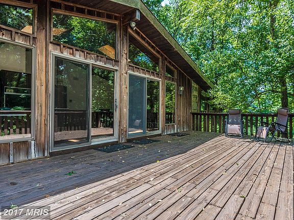 Fantastic contemporary w/three stunning stone fireplaces. Multi-level decks and patio, nestled in the woods convenient to Rt. 340 for commuters. Over 2000 sq ft finished with additional unfin area, or enjoy the large workshop/storage area that walks out to the patio. Gorgeous beamed ceilings, skylights, and wood floors. Fireplaces were recently re-lined (paperwork available). Rare Find!