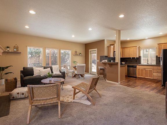 Enjoy the Bend life if this wonderful home near it all! This charming home is warm and inviting with a great-room floor plan allowing for gathering and entertaining. Gorgeous Teak hardwood flooring in the entryway and kitchen. Kitchen includes, quartz counter tops, an eating bar, and large pantry. Upstairs you will find all bedrooms, a convenient laundry room, and a lovely primary suite with coffered ceilings, lots of windows and a big walk-in closet. This corner lot has a large fenced (and fabulous) yard that is perfect for enjoying the Bend weather and family play. There is an oversized patio, and pergola with peek-a-boo views of the cascade mountains. RV is parking behind a gate on the side of the house and is perfect for your trailer or boat. Near Rockridge park and Lava Ridge elementary, this is a great spot to call home. OPEN HOUSE, Saturday, 4/9, 11AM- 1PM