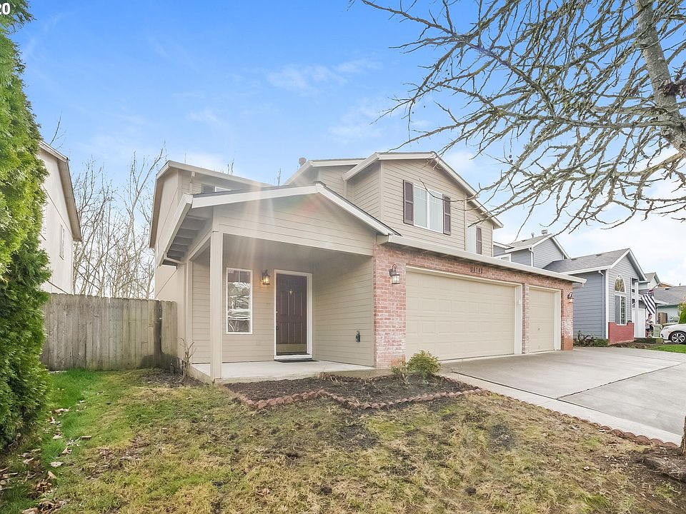 This Beaverton two-story offers a fireplace, granite kitchen countertops, a master bathroom quartz vanity, a den, and a three-car garage.