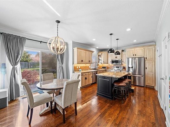 In the backyard, you’ll discover your own private oasis. The upgraded stamped concrete patio leads to a luxurious hot tub nestled inside a gazebo, perfect for relaxing after a long day. Alternatively, gather around the gas fireplace for s’mores and to cheer on the Chiefs. This lot features a privacy wood fence, beautiful landscaping, and an in-ground sprinkler system.