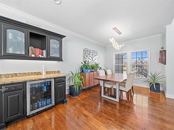 As you enter, admire the beautiful hardwood flooring that flows throughout the main floor. The dining room is connected to a built-in beverage station, which includes a mini-fridge. The kitchen boasts granite countertops, a spacious island, and a walk-in pantry. Additionally, you’ll find a well-placed laundry room and drop zone right as you enter from the garage, providing space for all your winter gear.