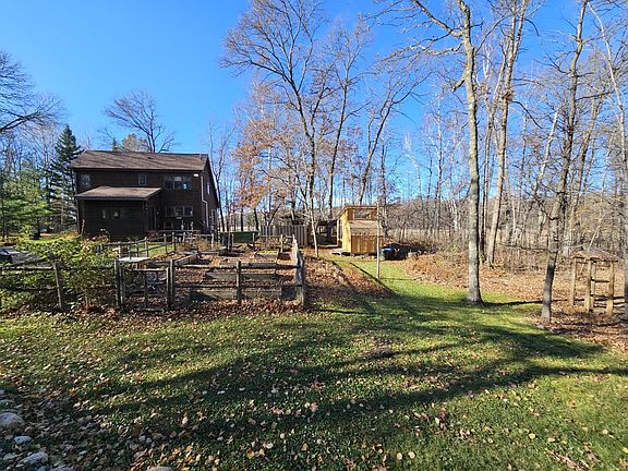 This Hay Lake property boasts 20 acres, encompassing ample wooded areas, water frontage & lake access. The home features two bedrooms and three bathrooms, with the potential to add two more bedrooms in the loft or basement areas. The main level hosts a full bathroom and bedroom, with vaulted ceilings lending to the home's rustic allure. The kitchen is spacious, with plentiful cabinets and a window overlooking the scenery. Take pleasure in the warmth of the gas-burning fireplace while enjoying panoramic views of the grounds. The lower level consists of a family room, utility room, and half bath. The upper level houses a bedroom with a 3/4 bath with loft. A heated shop is located within the garage. Access to the lake and pond presents opportunities for fishing and hunting. The park-like setting provides a serene ambiance with stunning sunsets. Additionally included is a gazebo, garden shed and garden area. Enjoy the privacy of end-of-road living with a newly paved road.