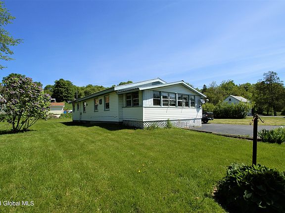 Estate sale nice country ranch 2 bedroom home that has been well kept over the years with easy commute to shopping & schools. Beautiful pine cabinetry in kitchen with cute breakfast nook, dining area, extra-large living room with gas stove, 2 bedrooms one with built in dresser wall & closet, three seasons front covered and enclosed sun porch, mud room with laundry, utility room, sellers installing new sink in bath, new propane furnace in 2021, detached two car garage and workshop, paved driveway, mins to Vermont!
