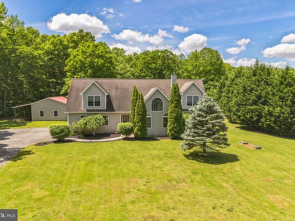 Immerse yourself in tranquility at this exquisite custom-built home nestled on 25 private acres. This expansive property offers the perfect blend of seclusion and convenience, just 20 miles from Dover Air Force Base. Upon entering the grand foyer, you'll be greeted by a captivating floor plan designed for effortless entertaining. The magnificent great room boasts a soaring vaulted ceiling with skylights, a captivating wood-burning fireplace with a custom walnut mantle, and American Beechwood flooring milled from the property's own trees. The heart of the home is a gourmet kitchen showcasing exquisite custom maple cabinetry, Brazilian quarry countertops, and a generous breakfast bar with seating for six. The adjacent formal dining room offers access to a spacious deck, perfect for al fresco dining. A first-floor bedroom suite provides a convenient haven for guests. The main floor also features a full bathroom,laundry/mud room, and a coat closet. Ascend the staircase to discover a balcony overlooking the grand room. The expansive master suite boasts a luxurious bathroom and ample space to accommodate even the most king-sized furniture. Two additional bedrooms and a versatile bonus room that can function as a fifth bedroom complete the upstairs living quarters. Beyond the main residence, a 32' x 24' converted pole barn offers endless possibilities. Convert it into a home office, in-law suite, or a space to ignite your creativity. Step outside and embrace the serenity of your private oasis. Enjoy gatherings on the expansive deck, gather around the inviting fire pit, or explore the beauty of your meticulously maintained 25-acre property with a mix of cleared and wooded areas. This exceptional property is a masterpiece of craftsmanship and design. With its luxurious appointments, private setting, and versatile accommodations, it caters to those seeking a truly extraordinary lifestyle. Schedule a private tour today and experience the epitome of country living at its finest! Don't miss this opportunity to own this amazing property.