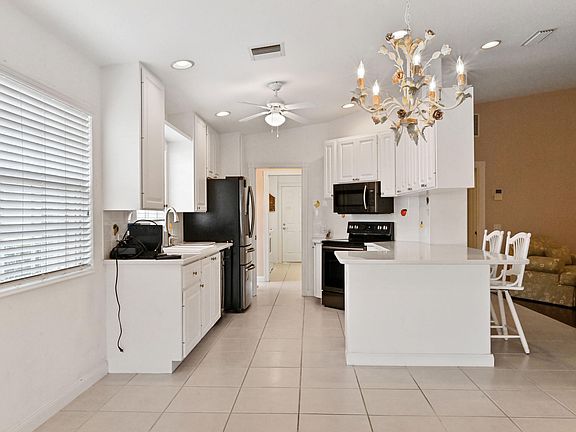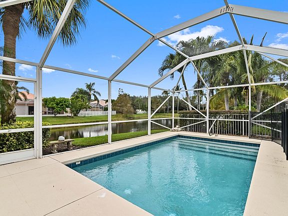 Welcome to your new one-story pool home in the prestigious gated community of Villagewalk of Wellington. This captivating 2-bedroom, 2-bathroom home is a true gem, offering a lifestyle of comfort and sophistication. The kitchen boasts white cabinets and contemporary appliances, providing a stylish and functional space for culinary delights. The laundry room, complete with a laundry tub, adds convenience to your daily routine. The family room, adorned with natural light, features sliding door access to the screened patio and pool area. The ground-level master bedroom is a retreat in itself, featuring an ensuite bathroom with dual sinks and a walk-in closet, offering both luxury and practicality The convenience of a 2-car attached garage enhances the property's appeal, providing secure parking and additional storage options. Step outside to discover the screened pool, where you can relax and unwind while enjoying picturesque lake views, creating a serene backdrop to your daily life.