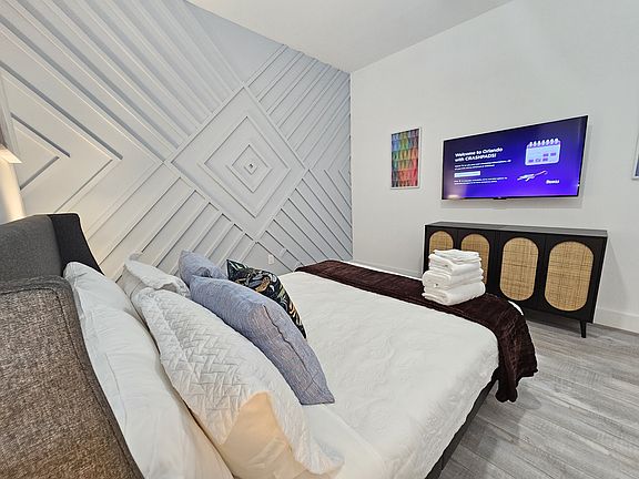 Welcome to 2075 Jewel Ave, a beautifully designed modern home located in one of Winter Park's most desirable neighborhoods. Built less than two years ago, this two story residence offers 5 bedrooms, 4 full bathrooms, and approximately 3,000 sq ft of thoughtfully planned living space, perfect for families, professionals, or anyone seeking comfort with style. Inside, you'll find contemporary finishes, modern appliances, and wood flooring throughout. The open concept kitchen features high-end fixtures and generous counter space, flowing seamlessly into a bright, inviting living area centered around a sleek fireplace. Upstairs, a private movie room with arcade games provides the ultimate entertainment space. Step outside to your fully fenced backyard, complete with a private hot tub and spacious patio, ideal for relaxing evenings or casual get togethers. With no pool to maintain, you'll enjoy low maintenance outdoor living in a peaceful setting. Located just minutes from Park Avenue, top-rated schools, and the Winter Park Chain of Lakes, walking distance to Dubsdread Golf course this home delivers modern luxury, convenience, and the very best of Central Florida living. Last months Rent Due at Signing Utilities - $150 fee monthly covers all utilities Lease terms min of 30 days. Lease amount shown is for lease term of 3 or more months. 1 Month Lease = $7,100 2 Month Lease = $6,500 3+ Months = displayed rate