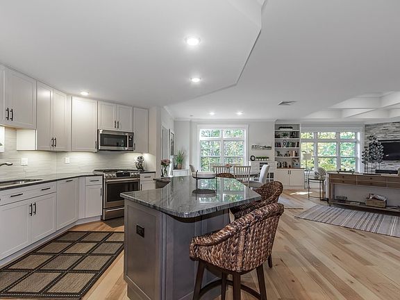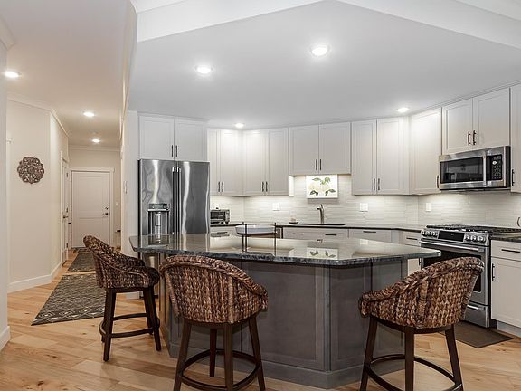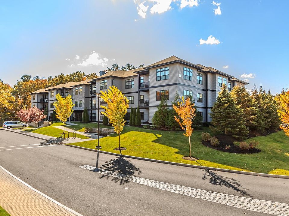 PRIME UNIT Location in one of Portsmouth's most sought after communities. Only THREE years new, this TOP FLOOR corner unit is now available. The multiple windows throughout this home flood the living space with natural light, while allowing you to still enjoy the beauty of the mature trees that surround this corner of the building. Gorgeous natural hickory hardwood floors flow seamlessly through all rooms. The kitchen offers a large center island to help with both preparing a meal or entertaining friends. Plenty of cabinets for storage along with TWO designated pantry closets. G.E. Cafe stainless steel kitchen appliances, as well as full size washer and dryer stay with this home. The living room is cozied up with a beautiful natural gas stone ledge fireplace, detailed tray ceiling, and a custom built in dry bar with added storage. The home office also offers custom built in bookcases and file storage for all of your "work at home" needs. The office is finished off perfectly with two full glass pocket doors for when you need "quiet" space. The Primary suite is completed with a private bath with step in shower, double vanity and oversized linen closet. Primary walk-in closet has been fitted with custom cabinetry. SO MUCH TO SEE in this home! Two deeded parking spaces included in HEATED garage. Come see for yourself how lovely your life could be if YOU lived in this fabulous home. First showings to be held at OPEN HOUSE on Saturday October 22nd, 10am - 12pm.