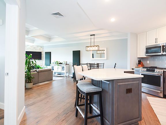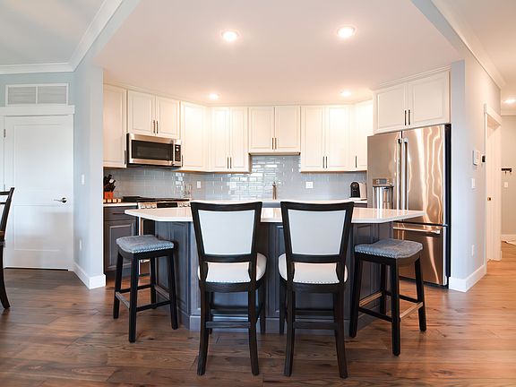 Experience the epitome of modern living in this beautifully appointed 2-bedroom condo, nestled in a sought-after community. Boasting stunning hardwood floors, quartz countertops, and top-of-the-line stainless steel appliances, this single-level home offers the perfect blend of comfort and convenience. The open floor plan features a sunlit dining and kitchen area with a spacious island, flowing seamlessly into the living room, which includes a stone fireplace and access to a private balcony. The large primary bedroom offers an office space, a generous walk-in closet, and an en-suite bath. Additional highlights include in-unit laundry, recessed lighting, and a parking spot in the heated, secure garage, with plenty of outside parking available. Enjoy the serene surroundings of the community's lovely grounds, with the added convenience of being just a short 4-minute drive from downtown Portsmouth. Don’t miss this opportunity to own your dream home, combining style, functionality, and a prime location!