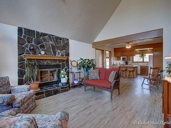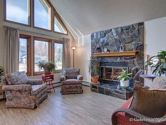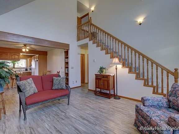 Great neighborhood & easy commute to Anchorage! Beautifully updated, custom 2 story home w/private master suite on it own floor! Nice entry area opens into impressive 2 story great room w/vaulted ceiling living room w/huge windows & rock fireplace, dining area, & kitchen. 2 Bedrooms & 1 bath to right of great room. HUGE 2 car garage, 2nd family room & multi-use room ( see more ) (great for home office, 2nd dining area, or lots of other uses) to your left. Boiler, hot water heater, & roof all about 6-7 year old! Don't miss the HUGE storage area in the hall downstairs & master bath up.