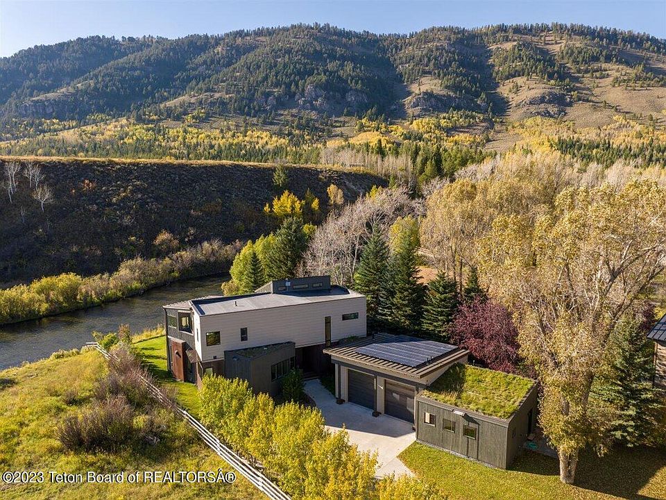 AVAILABLE TO SHOW 10/11 -Beautiful Mountain Modern home on Fish Creek. While only minutes from Wilson, this refined, contemporary home has a very private setting with Fish Creek being close enough to hear from the master suite windows. Recently furnished and upgraded with heightened garage headers to accommodate a Sprinter Van, new roof, interior and exterior paint, and installation of a gym floor for a workout room overlooking Fish Creek (making double use of an area that also functions as a large bedroom). New Lutron lighting system and Savant controls were also installed. The home has 3,737 SF of living area, inclusive of a 440 SF wing on the east side of the garage offering privacy for guests, with four bedrooms existing inclusive of guest wing. New Furnishings are negotiable