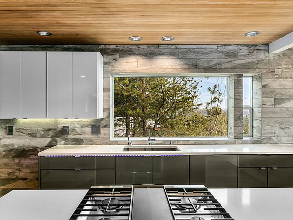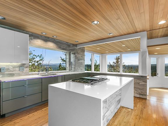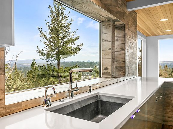Stunning home with full sweeping city and Cascade Mountain Views sits in the highly coveted area of the West Hills in NW Bend, minutes from downtown. This home has been completely remodeled and offers a spacious floorplan. The entire top floor is dedicated to the primary bedroom with a private deck to watch the sunset over the mountains. There is a large/open kitchen with Slat Cabinetry, new appliances, dining area, a spacious island opening to the great room. Here you will find vaulted ceilings and a stunning concrete wall to floor area with an eco wood burning fireplace. On the lower level, this home offers a big screen in the entertainment room with a mini fridge/bar area, and additional bedrooms. To complete this wonderful home, is an indoor spa room with a dehumidifying system, shower, triple jet Swim-in-Place pool/hot tub, with a UV cleaning system for purification, a separate cold plunge pool, and a steam sauna. On this .26 acre lot there is a shed and fire pit patio.