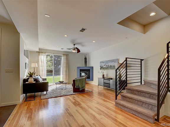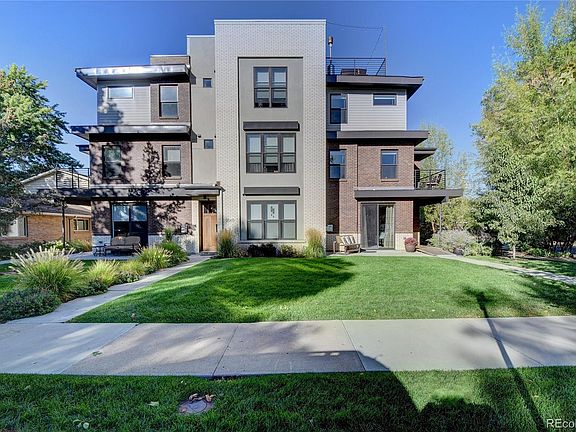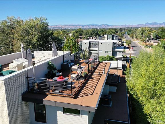 Enjoy the Sloan's Lake Lifestyle in this solid 3-story townhome~ Endless mountain views & sunsets from the oversized private Rooftop Deck!! This is a rare corner/end unit w/privacy of trees on one side. One Block to Sloan's Lake! Modern home, w/3 beds/4 bathrooms, a floor-plan designed for entertaining! Decks and patios on each floor, windows and light abound.Hardwood floors and beautiful wood doors lead you through an open layout for personal comfort & guests.Near Highlands/close to Downtown & Sloan's newer hotspots! Entering this home's first level, a foyer and a living room w/a gas fireplace, large windows, spacious dining room, open kitchen w/granite, stainless Bosch appliances, leading to a patio/grill area, 1/2 bath. 2nd level,a spacious Master Suite w/5-pc bath, jetted tub & private balcony, a large 2nd Bedrm/full bath, laundry room. 3rd level- Bedrm/full bath a loft/hobby room w/granite wet bar- for deck parties, a deck w/table & staircase to the Dream Deck- 2-car alley garage.
